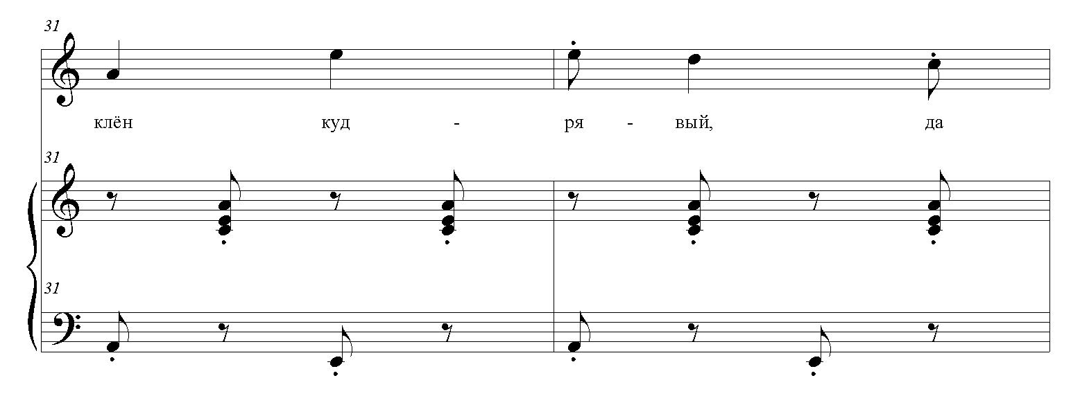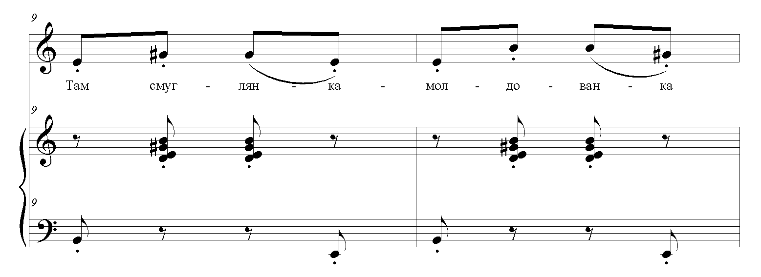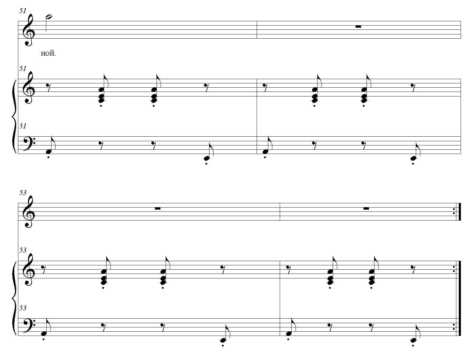 На предлоге "на хххх" переход на доминанту - Ми-септаккорд (си, септаккорд от ми, ми, септаккорд)-повторить 3 раза.